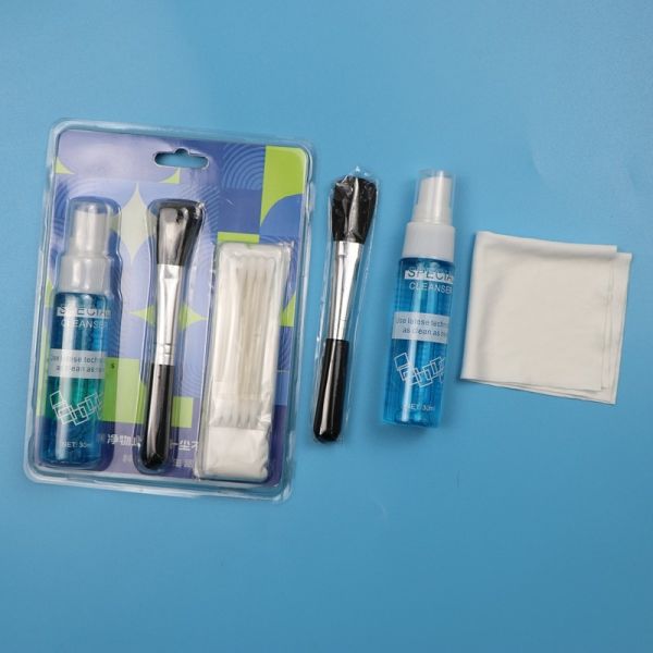 This kit is with 1pcs of microfiber wipes, 1 bag of cotton swab, 1pcs of brush and 30ml cleaner. The kit is for screen cleaning.